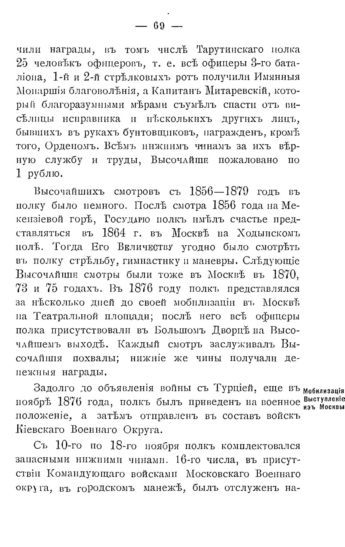 73 и 75 годахъ. Въ 1876 году полкъ представлялся