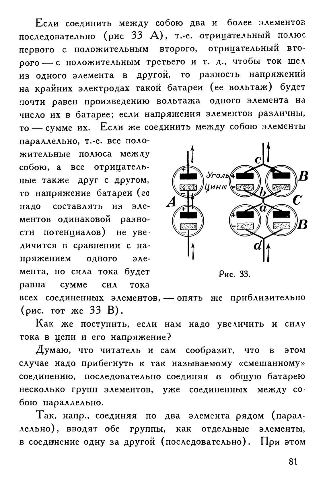 последовательно (рис 33 А), т.-е. отрицательный полюс