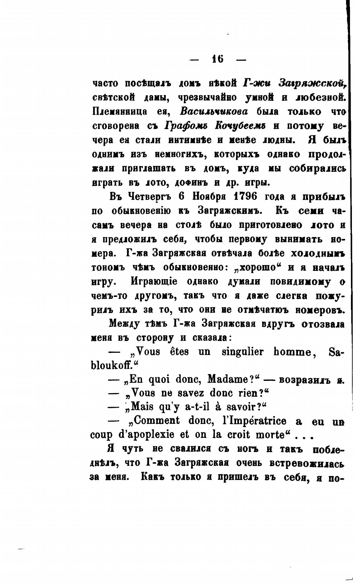 Между твмъ Г-жа Загряжская вдругъ отозвап