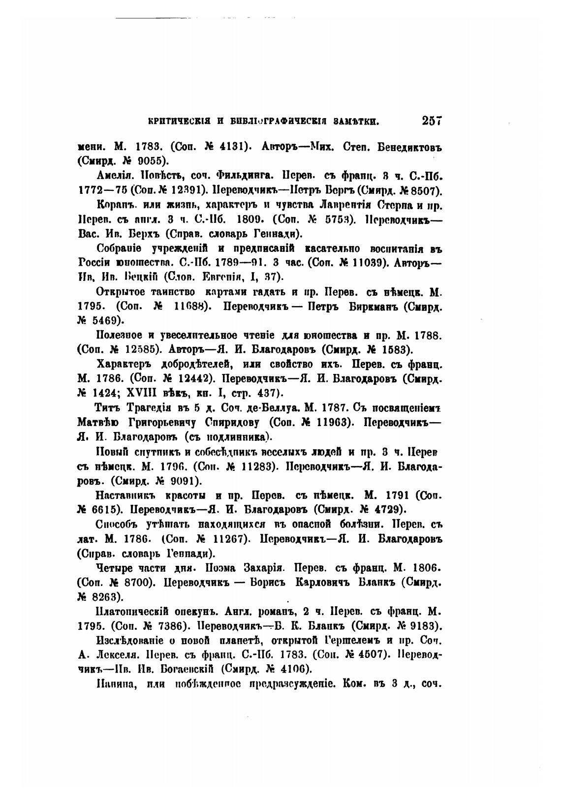 М. 1786. (Соп. 12442). Переводчикъ—Я. И. Влагодаровъ (Скирд.