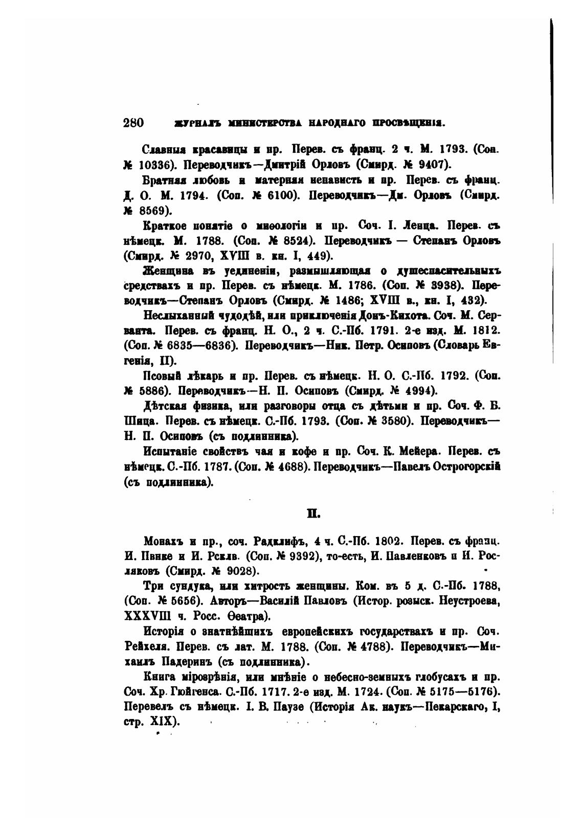 РеИхеп. Перев. съ пт. М. 1788. ев. 4788). Переводчикъ—Ми-