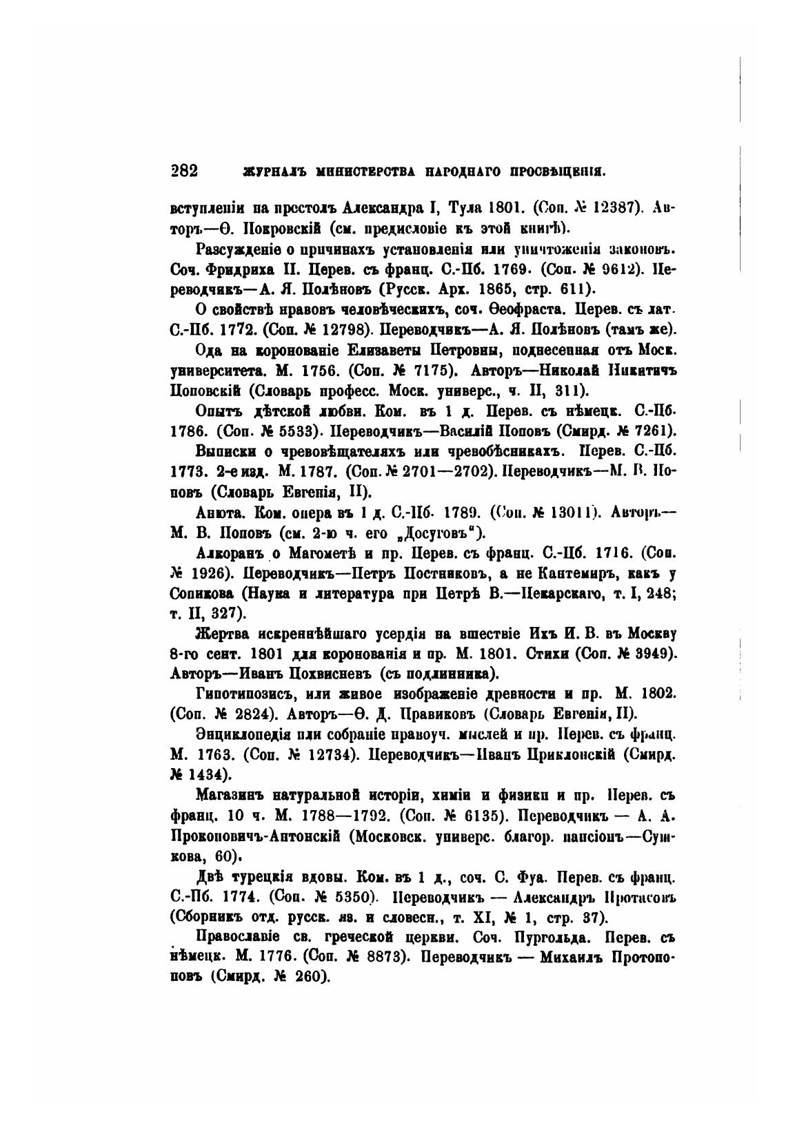 С.-Пб. 1772. (Соп. 12798). Перводчвкъ—А. Я. Пойновъ (тамъ же).