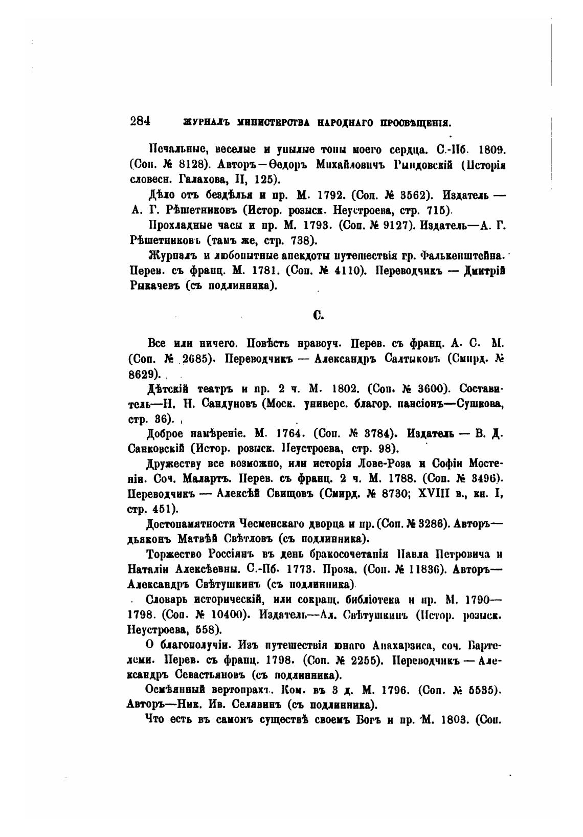 (Соп. 2685). Переводчивъ — Александръ Салтыковъ (Сиирд.