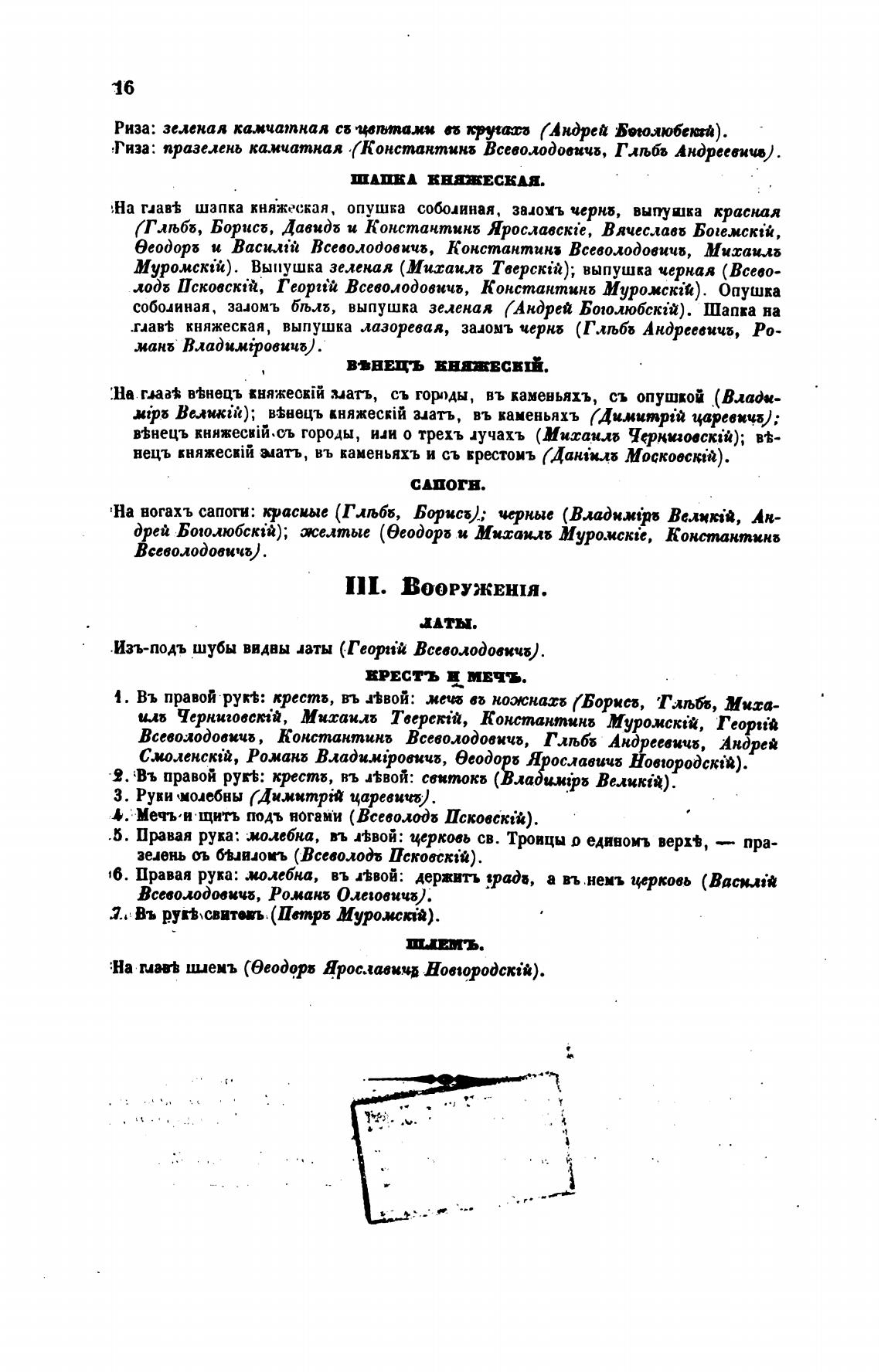 .глав•Ь княжеская, выпушка лазоревая, зааомъ чернб (Тлљбб Андреевицб, Ро-