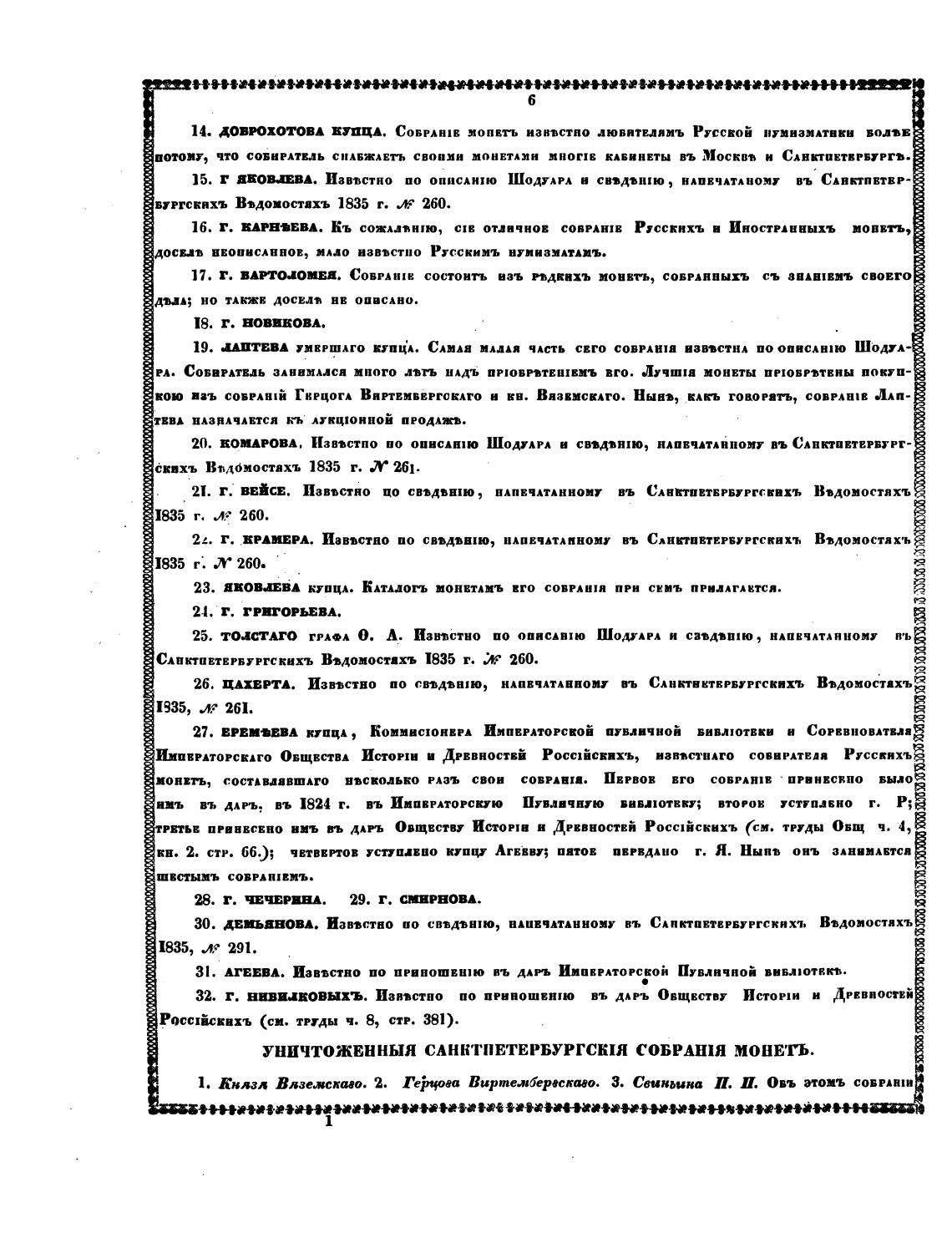 14. ДОВПХОТОВА ЕТЦА. СоврАНIВ мопвт•ь иав•встпо люватвляиъ Русской нумизмАтвки вол•в