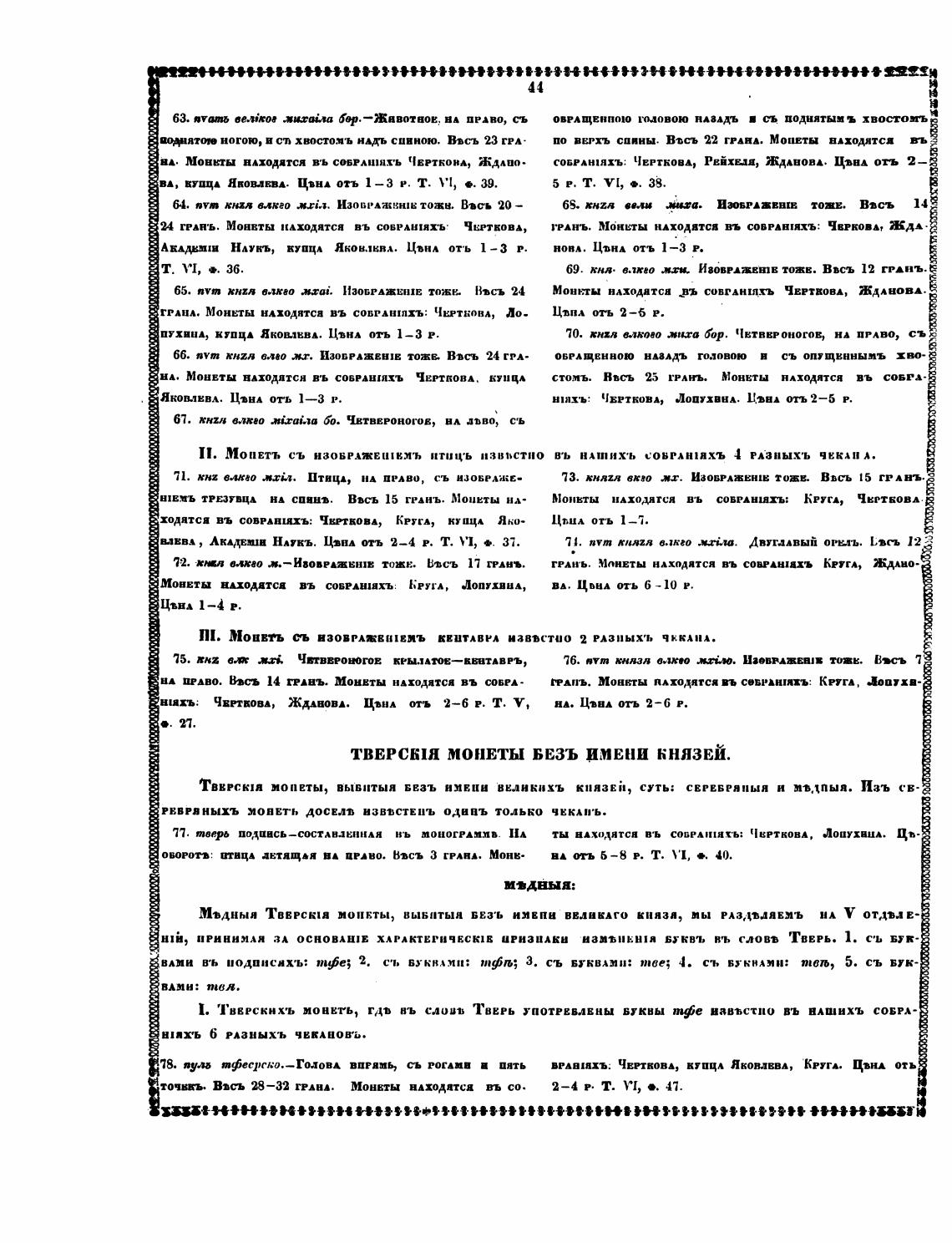 ТВврсюя мопеты, вывитын Безъ нмвии винкихъ князва, суть; СЕРЕБРЯиыя н л•дпыя. Изъ св-