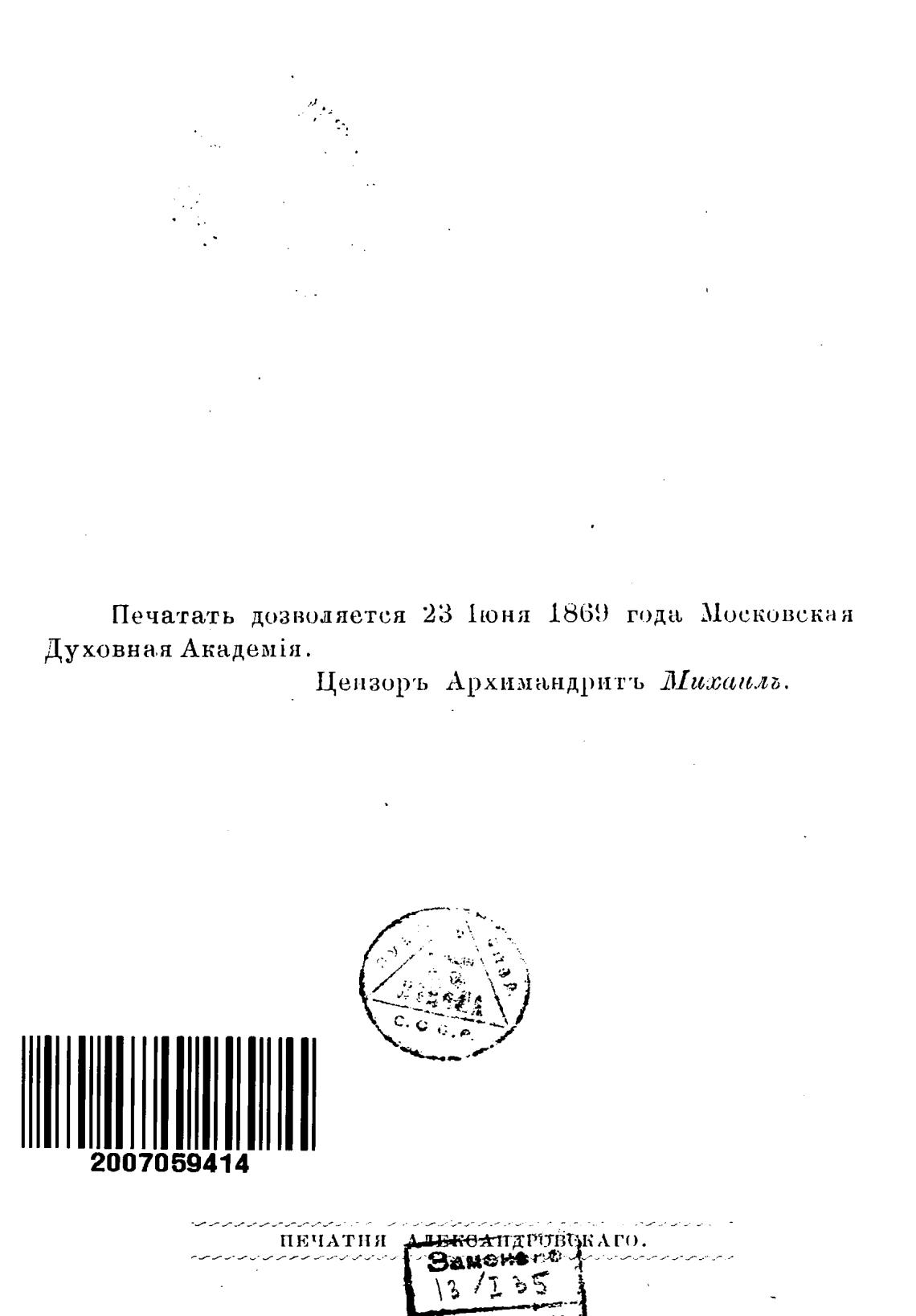 Печатать дозволяется 23 1юня 1869 года Московскан