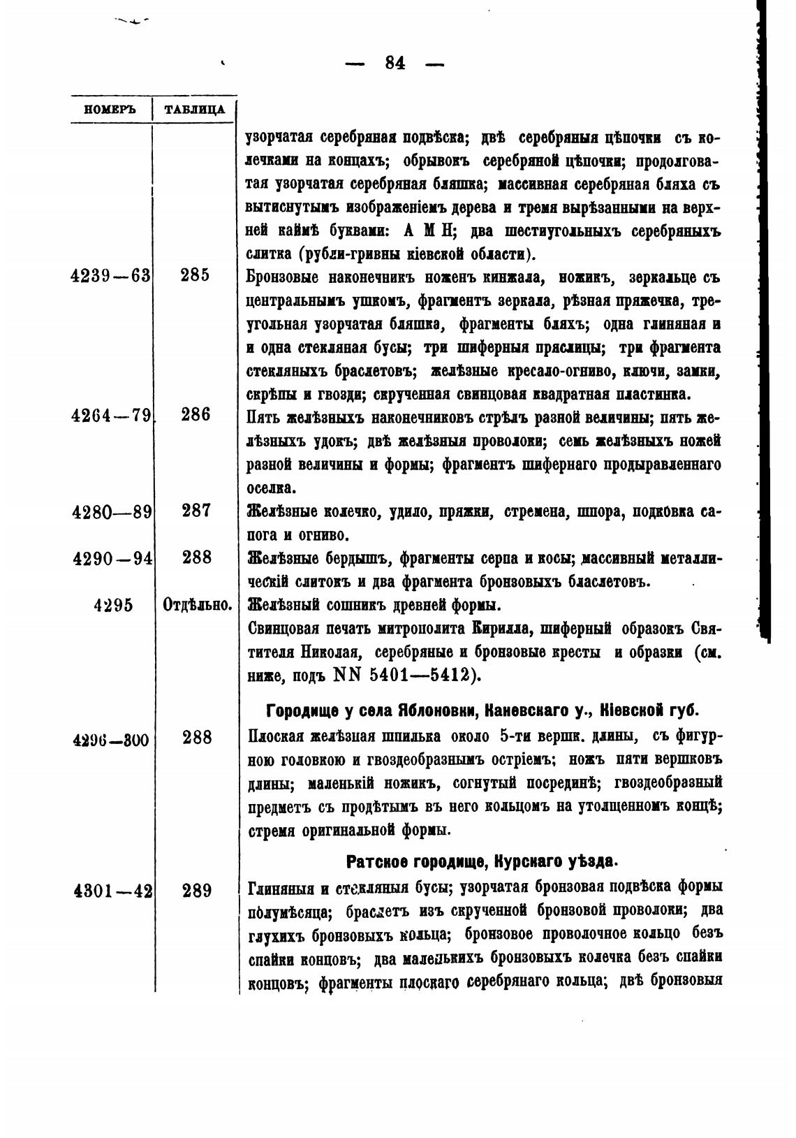 степяныхъ браслетовъ; желзные кресало-огниво, вочи, заики,