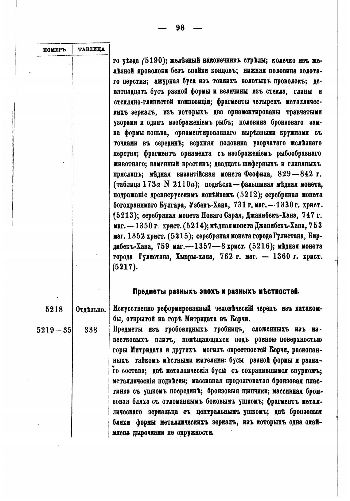 животнаго; каменный крестишь; двадцать шиферныхъ и гдинявыхъ