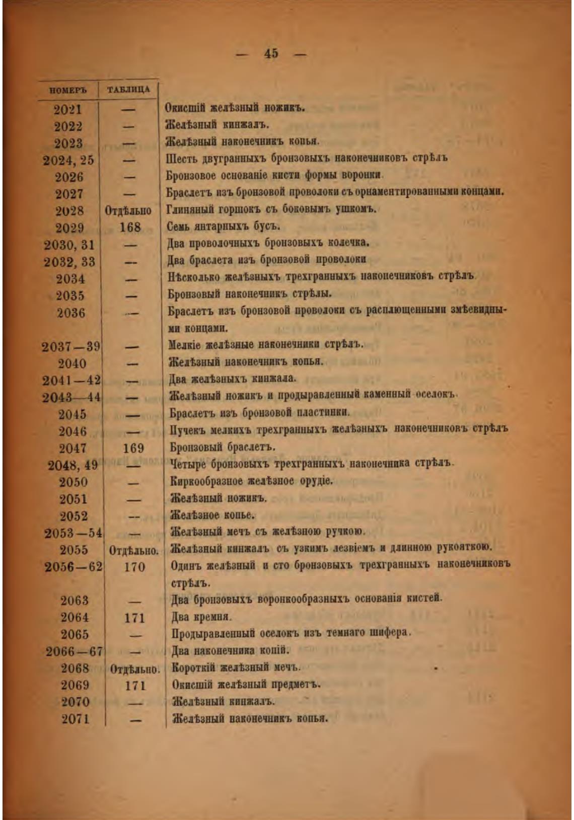Одинъ жел±зный и сто бронзовыхъ трехтранныхъ наконечниковъ