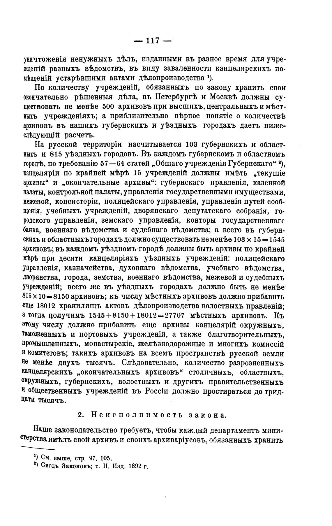 ществовать не мен%е 500 архивовъ ири высшпхъ, центральныхъ и мтст-
