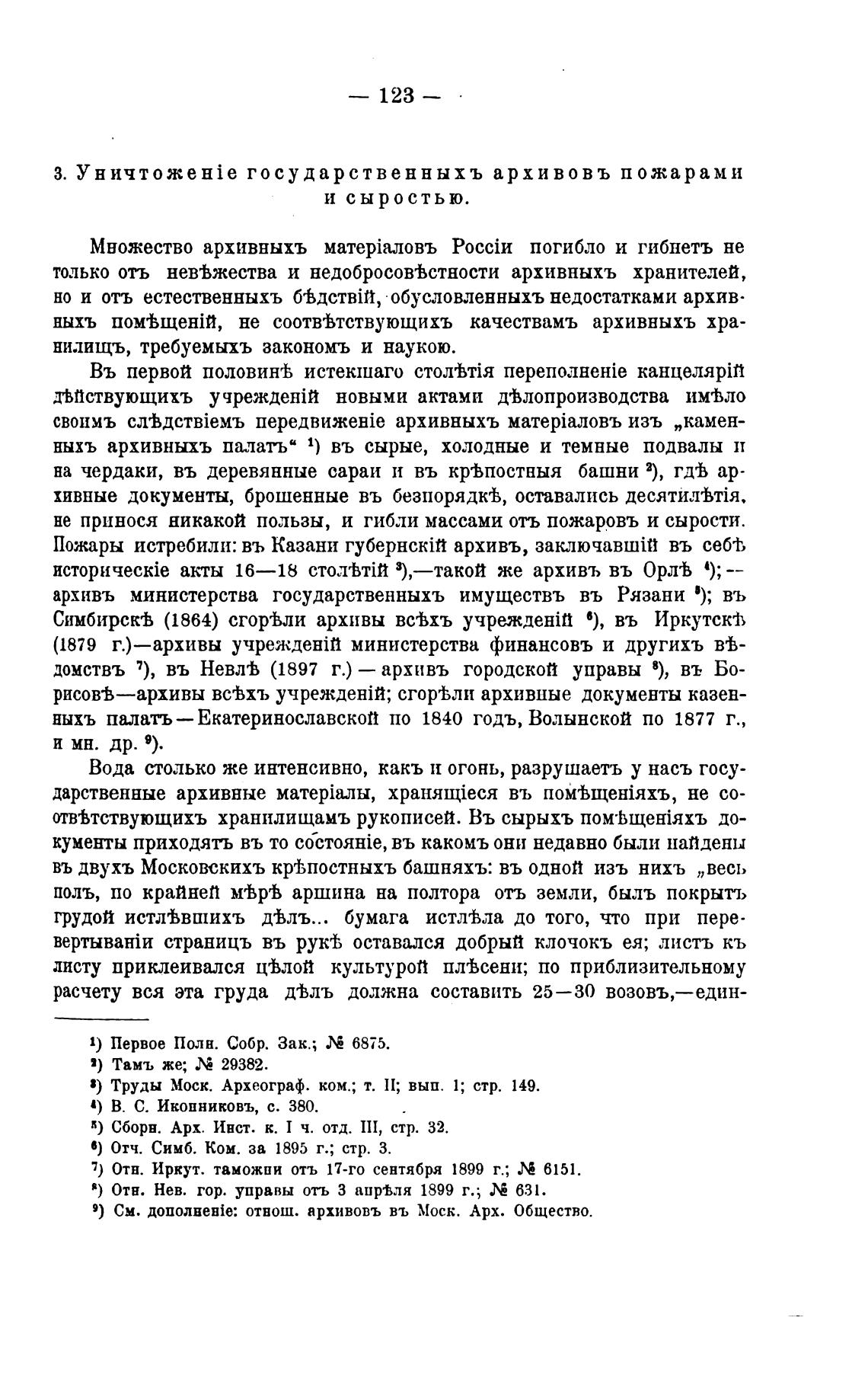 З. государственных ъ архивов ъ пожарами