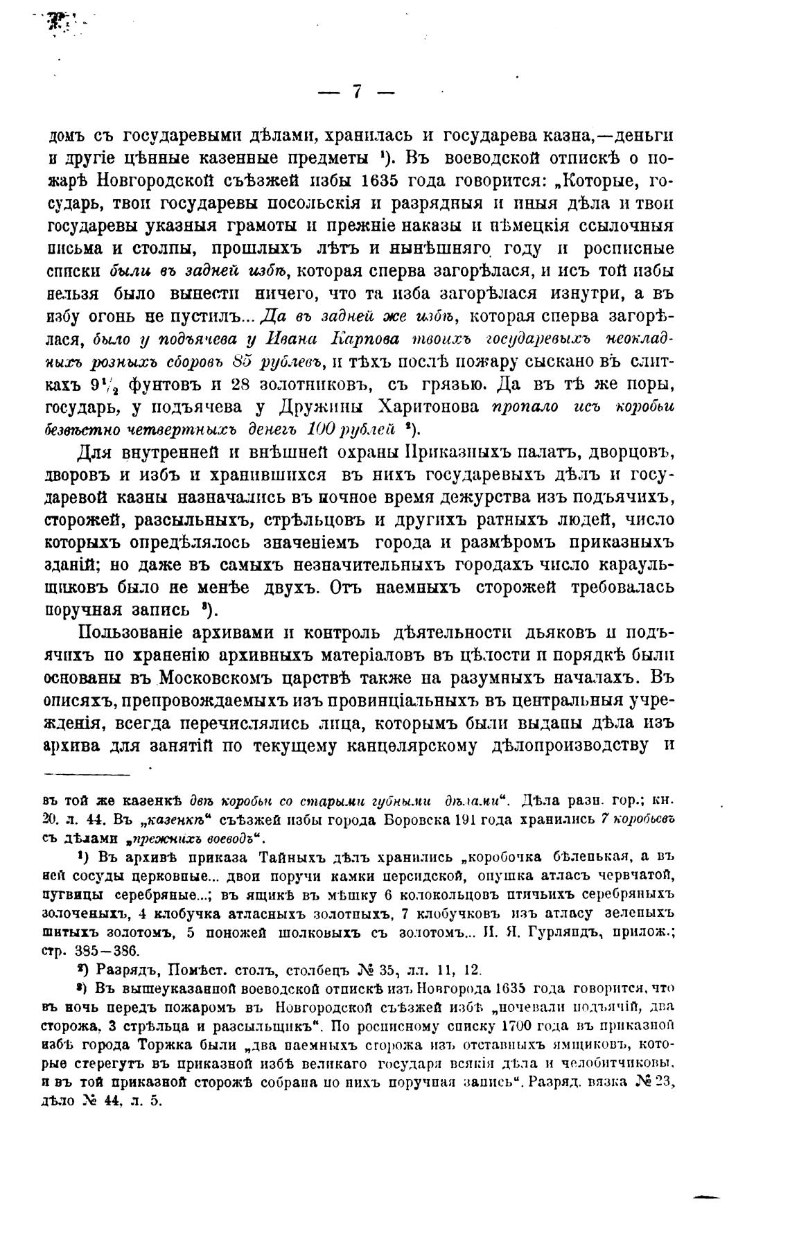 даревой казны назначались въ ночное время дежурства изъ подьячихъ,