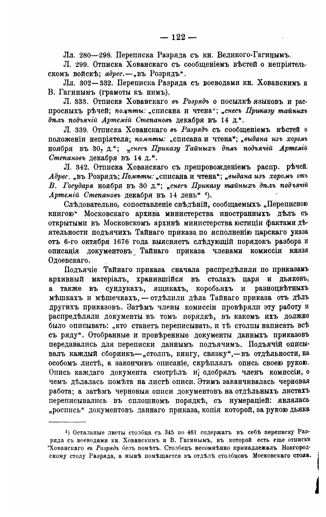 Лл. 280—298. Переписка Разряда съ кн. Великого-Гагицымъ.