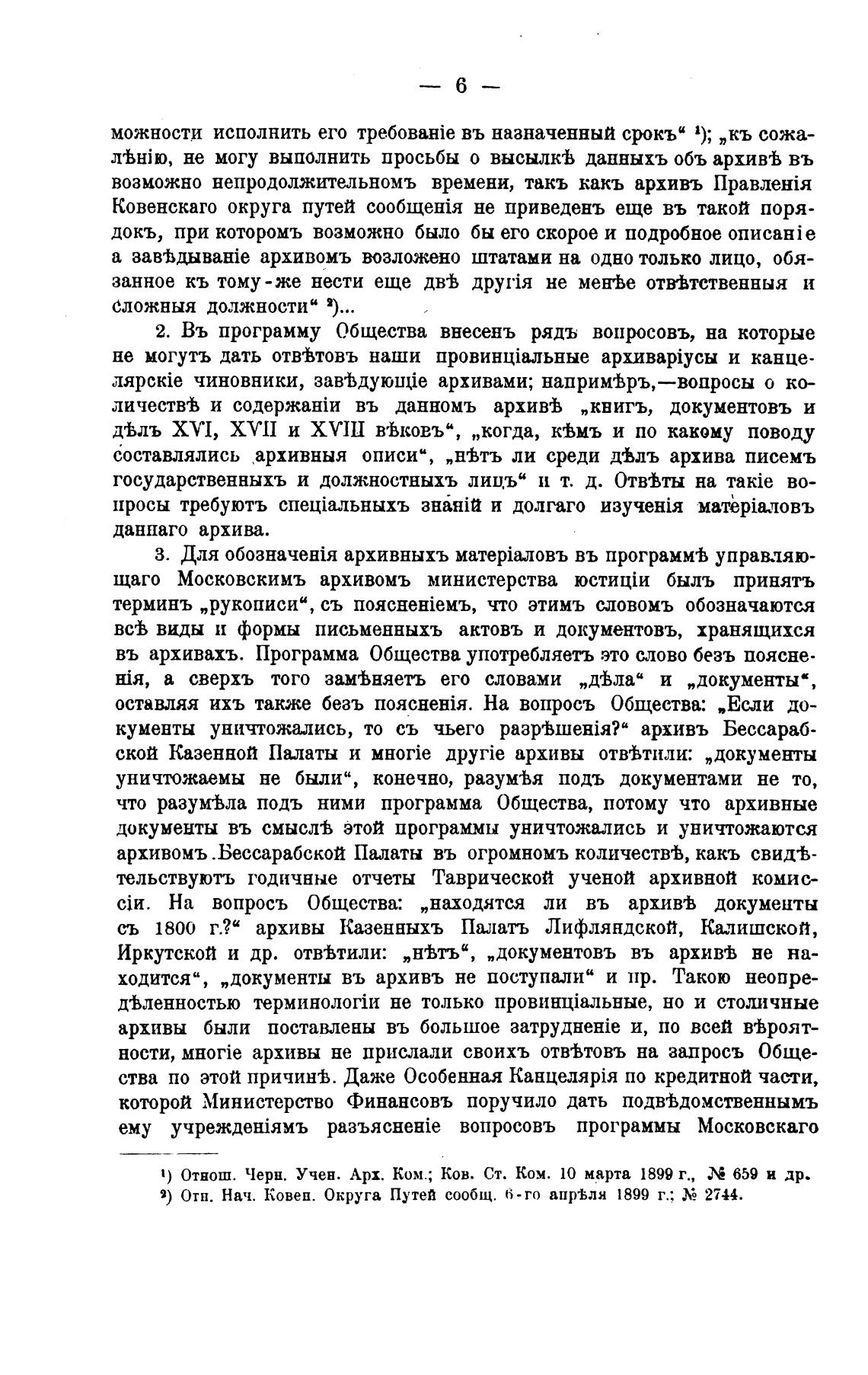 1) Отнош. Черн. Учен. Арх. Ком.; Ков. Ст. Ком. 10 марта 1899 г., 659 и др.