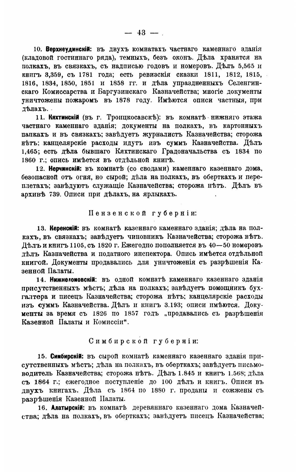 1816, 1834, 1850, 1851 и 1858 гг. и двла упраздненныхъ Селенгин-