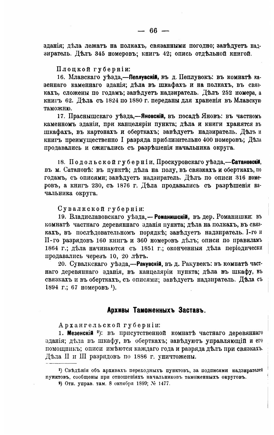 1) объ архивахъ переходныхъ пунктовъ, за подписями надзирателей