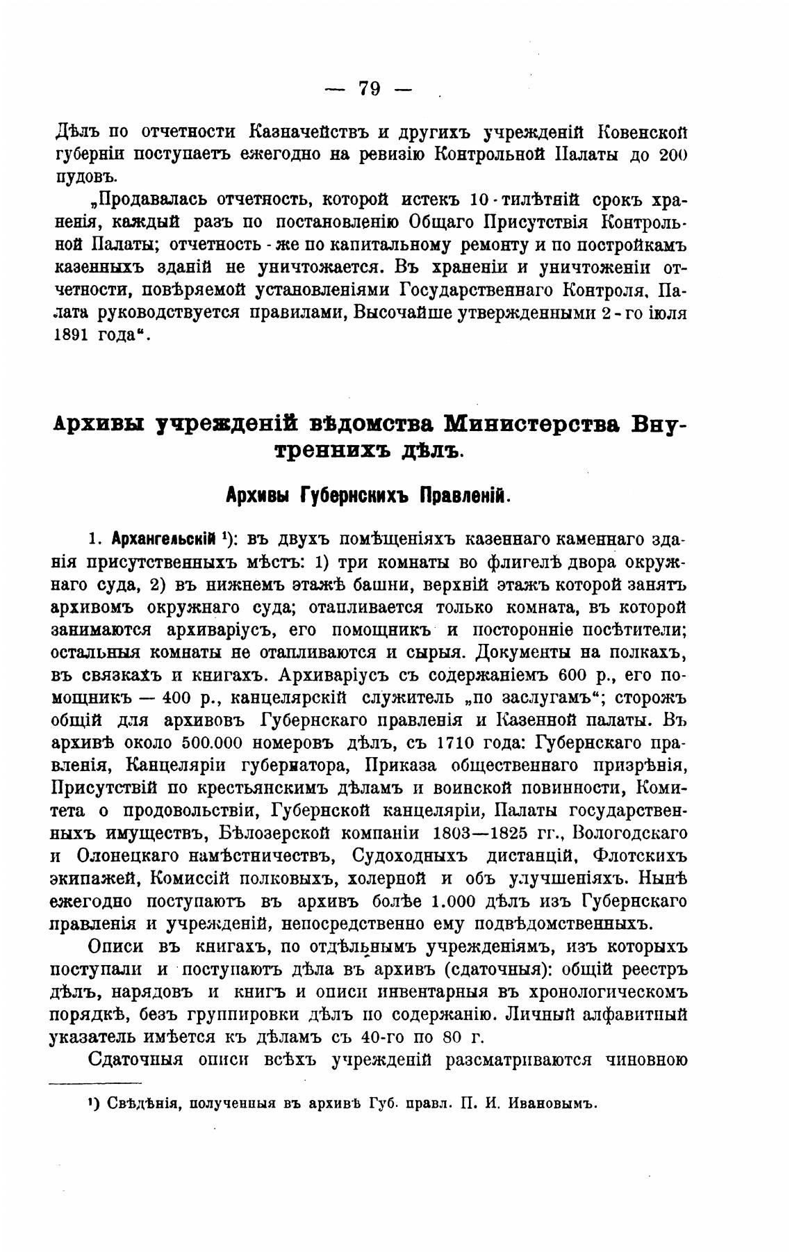 1) полученныя въ архив•Ь Губ. правл. П. И. Ивановымъ.