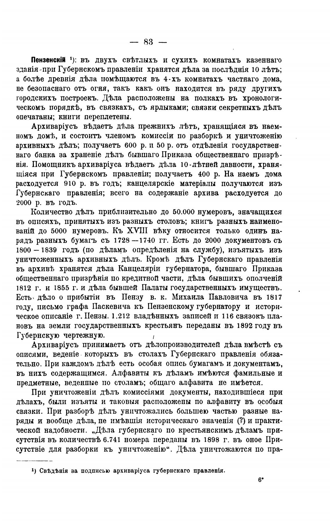 архивныхъ д%лъ; получаеть 600 р. и 50 р. отъ государствен-
