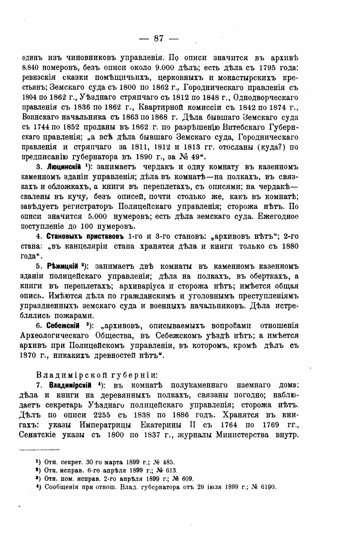 4. Становыхъ приставовъ 1-го и 3-го становъ: „архивовъ нфтъ”; 2-го