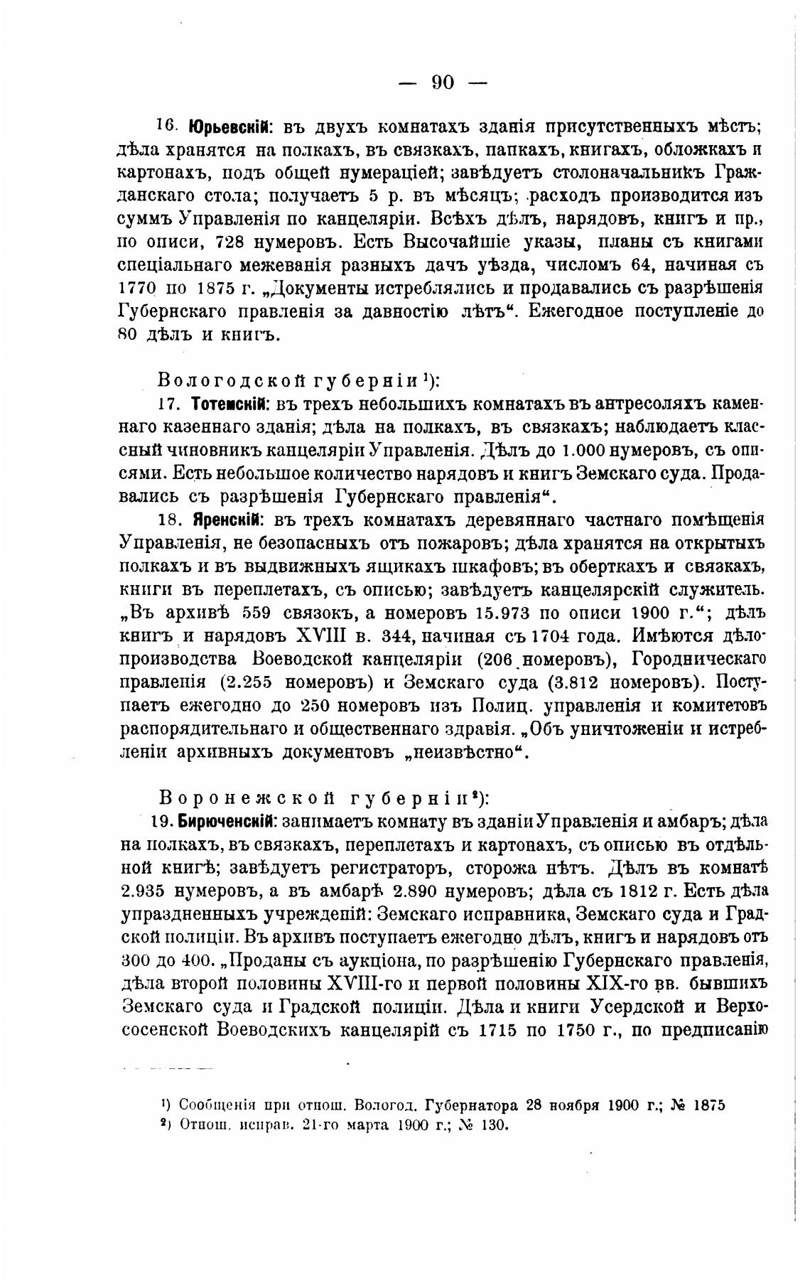 „Въ архив“Ь 559 связокъ, а номеровъ 15.973 по описи 1900 г.”