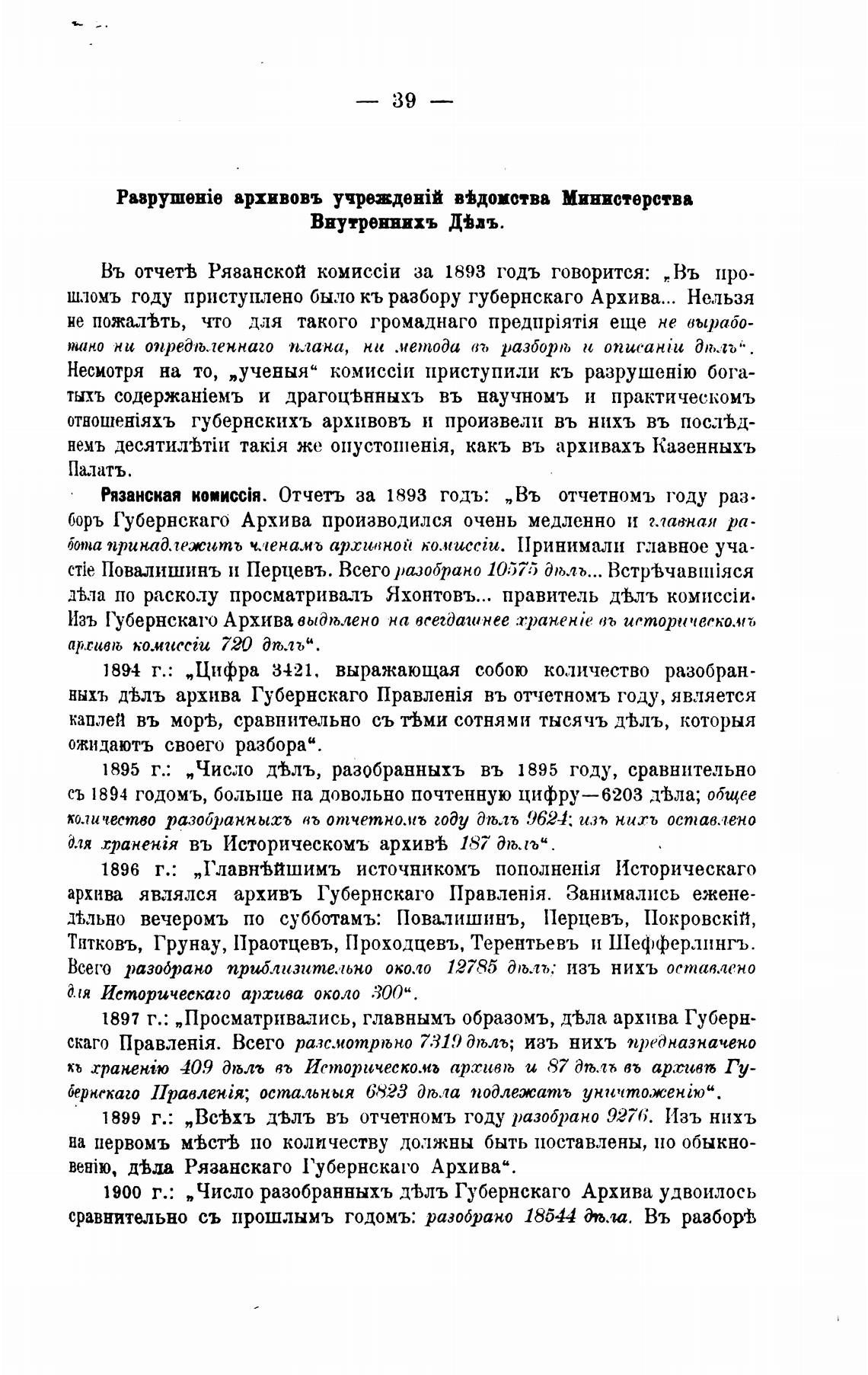 1897 г.: „Просматривались, главнымъ образомъ, щЬла архива Губерн-