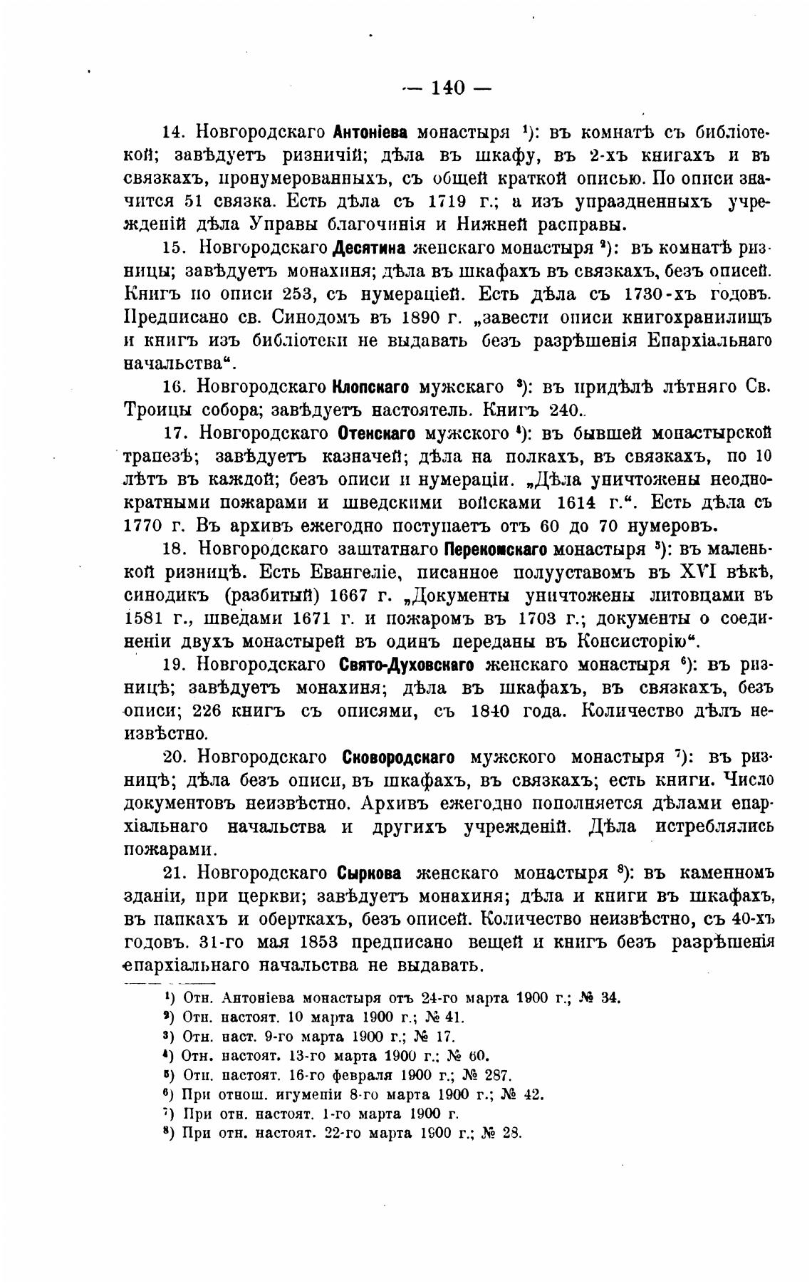 21. Новгородскаго Сыркова женскаго монастыря 8): въ каменномъ