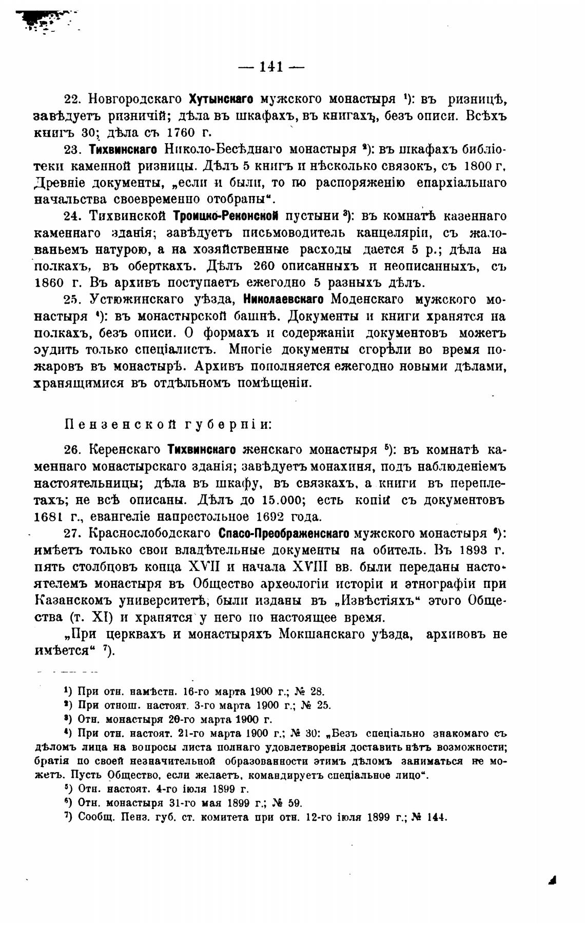 „При церквахъ и монастыряхъ Мокшанскаго у%зда, архивовъ не