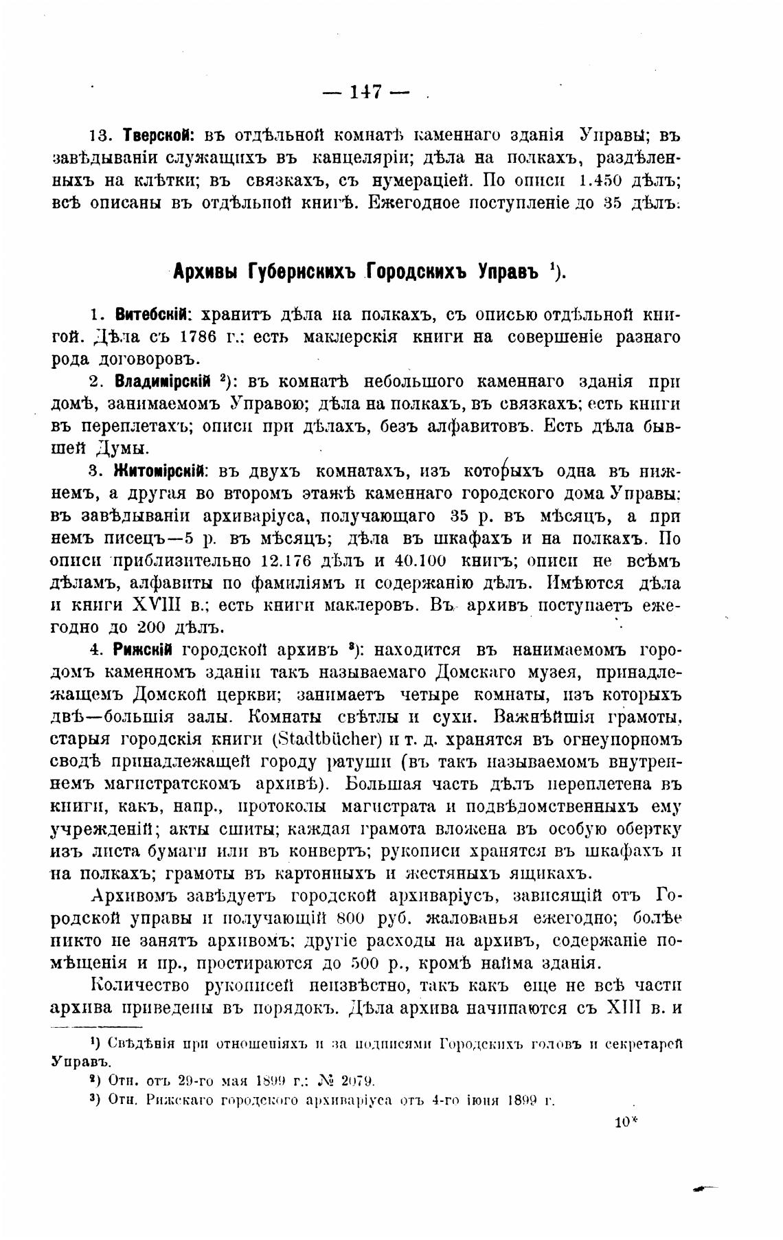 Архивы Губернскихъ Городскихъ Управь 1).