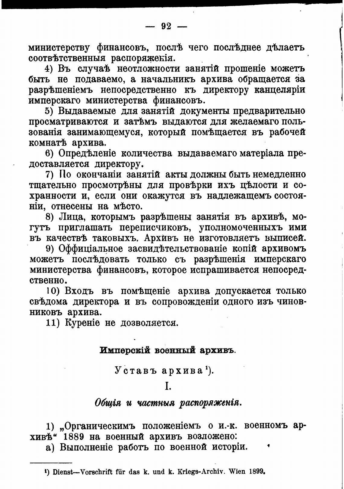 1) Dienst—Vorschrift ftir das К. und К. kriegs-Archiv. Wien 1899.