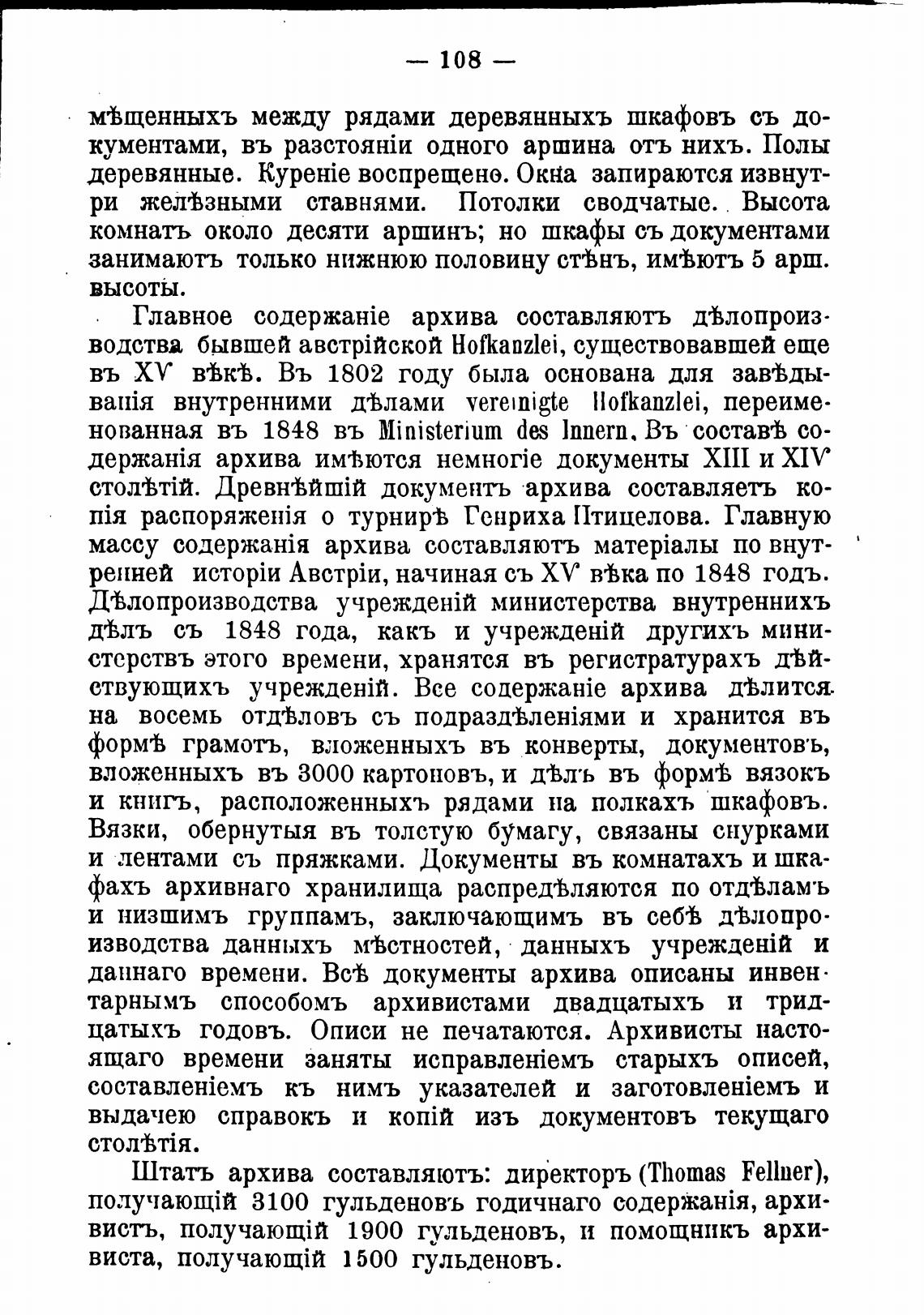Штатъ архива составляютъ: директоръ (Thomas Fellner),