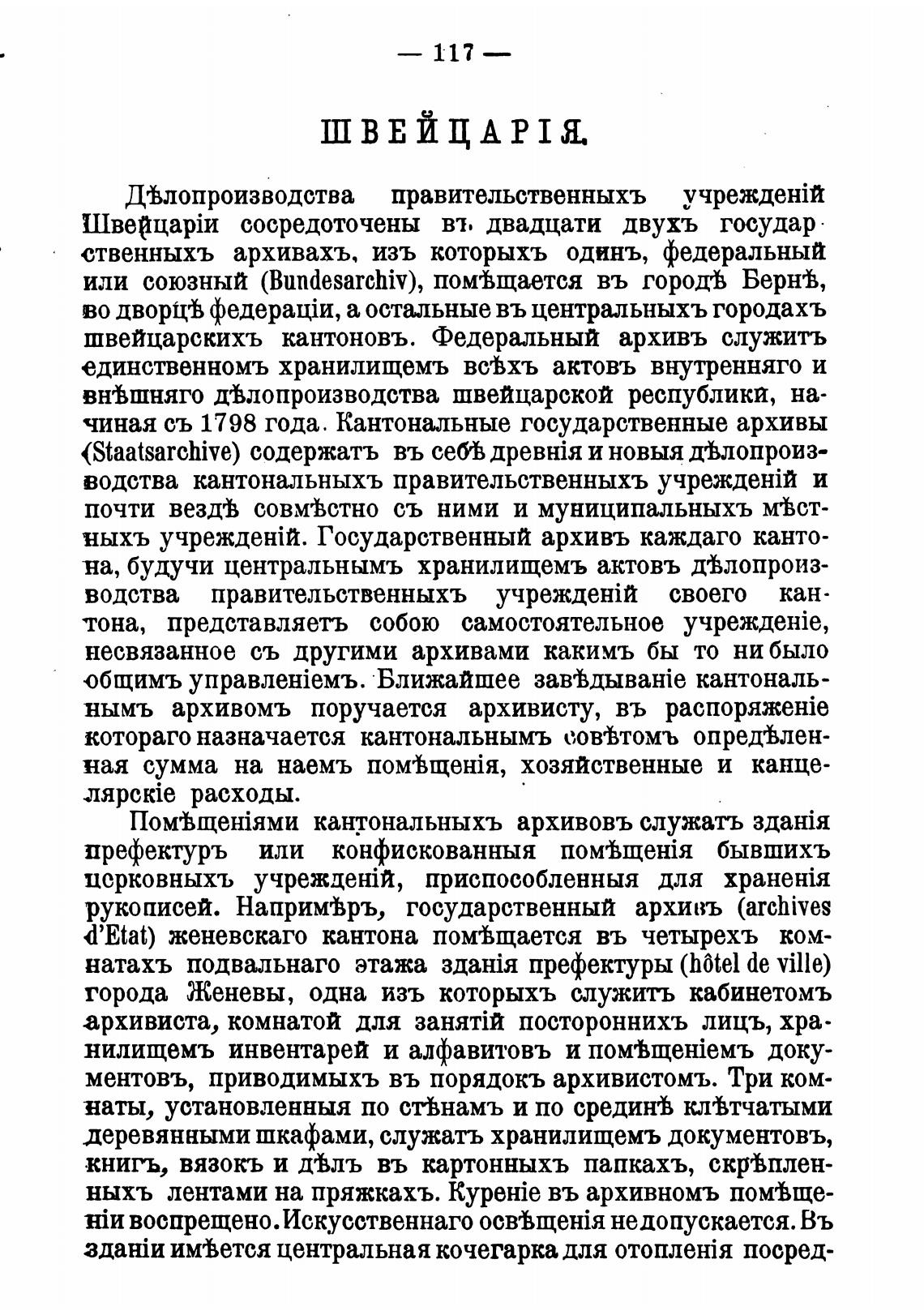 швейцарскихъ кантоновъ. Федеральный архивъ служить