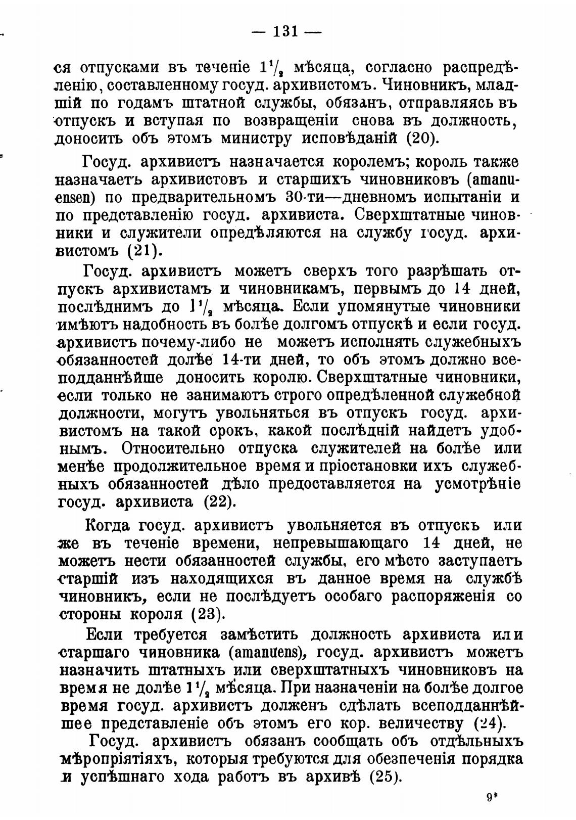 пускъ архивистамъ и чиновникамъ, первымъ до 14 дней,
