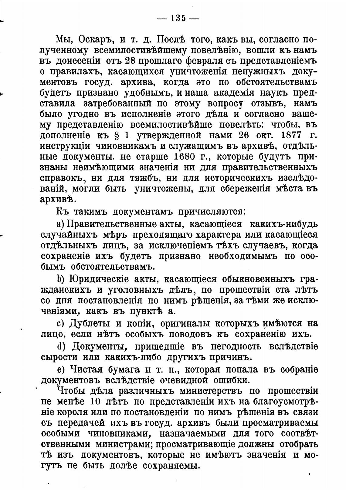 о правилахъ, касающихся ненужныхъ доку-