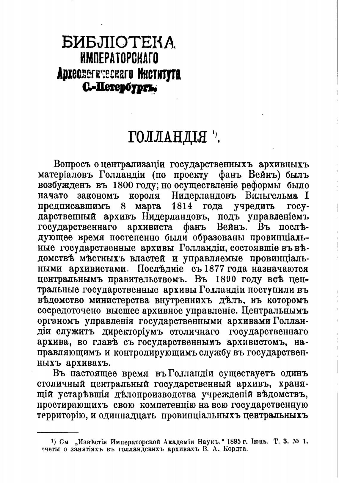 органомъ государственными архивами Голлан-