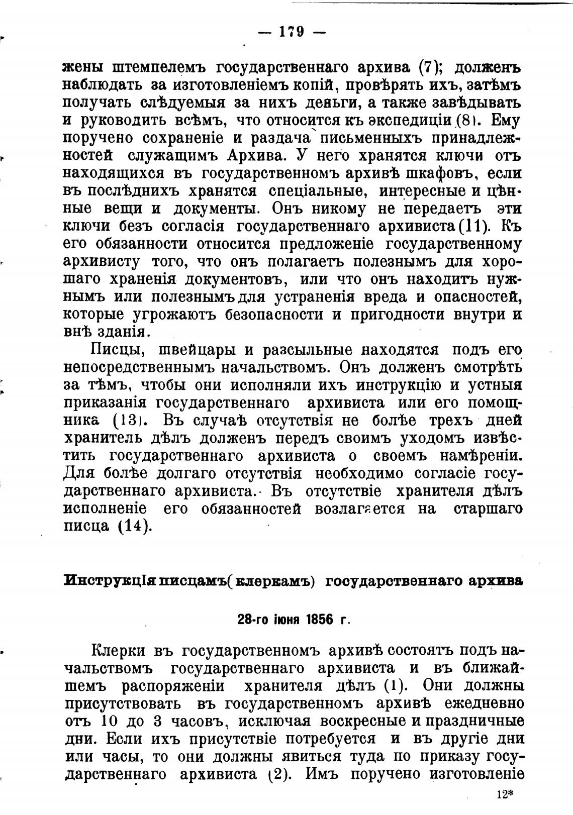 Инструвц1а писцамъ( вдервамъ) государственнаго архива