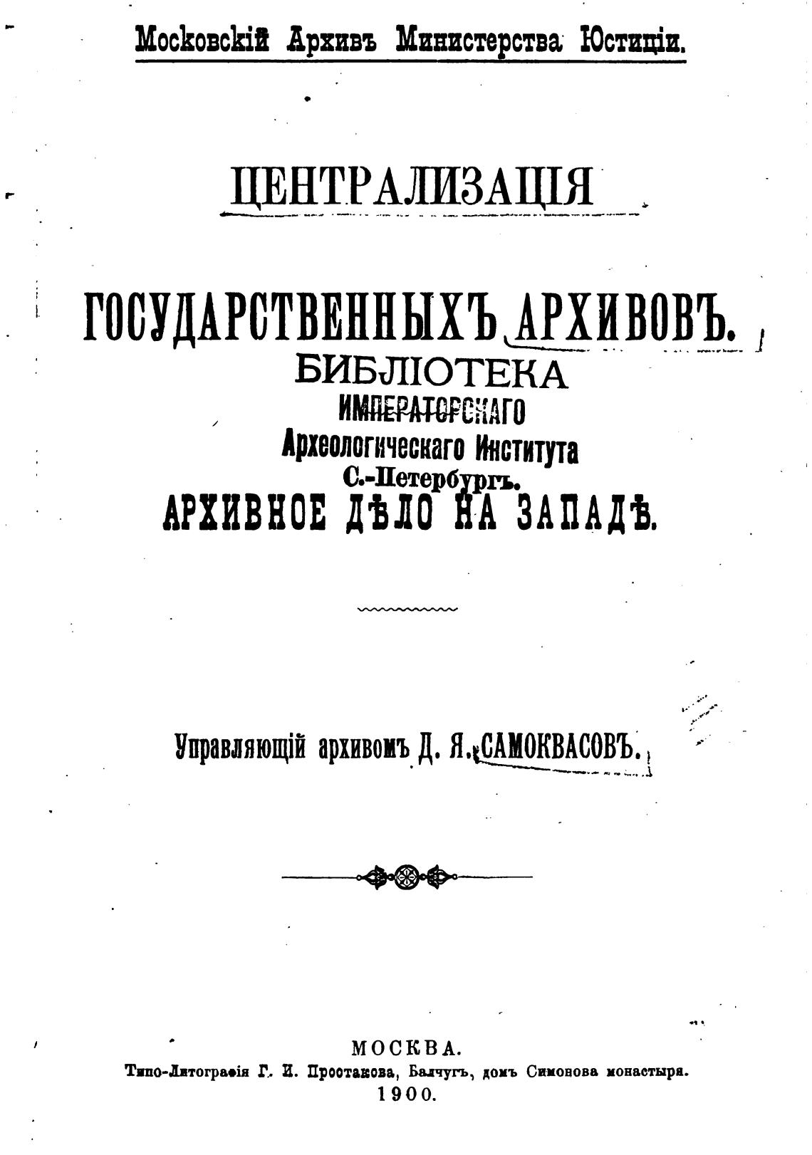 архивомъ Д. Я*САМОКВАСОВЪ.