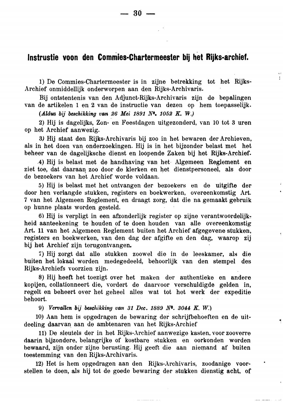 lnstrustie voon den Commies•Chartermeester bij het Rijks•archief.