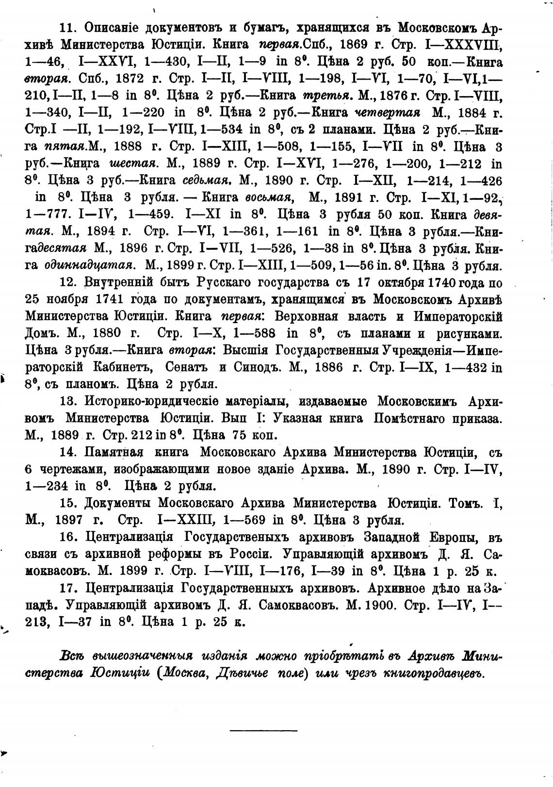 11. документовъ и бумагъ, хранящихся въ МОСЕОВСКОМЪ Ар-