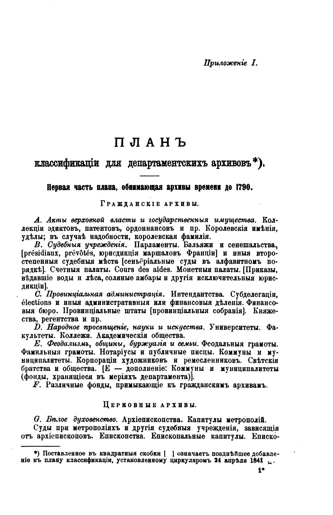 Е.шссификајй для департаментсвихъ арх.ивовъ