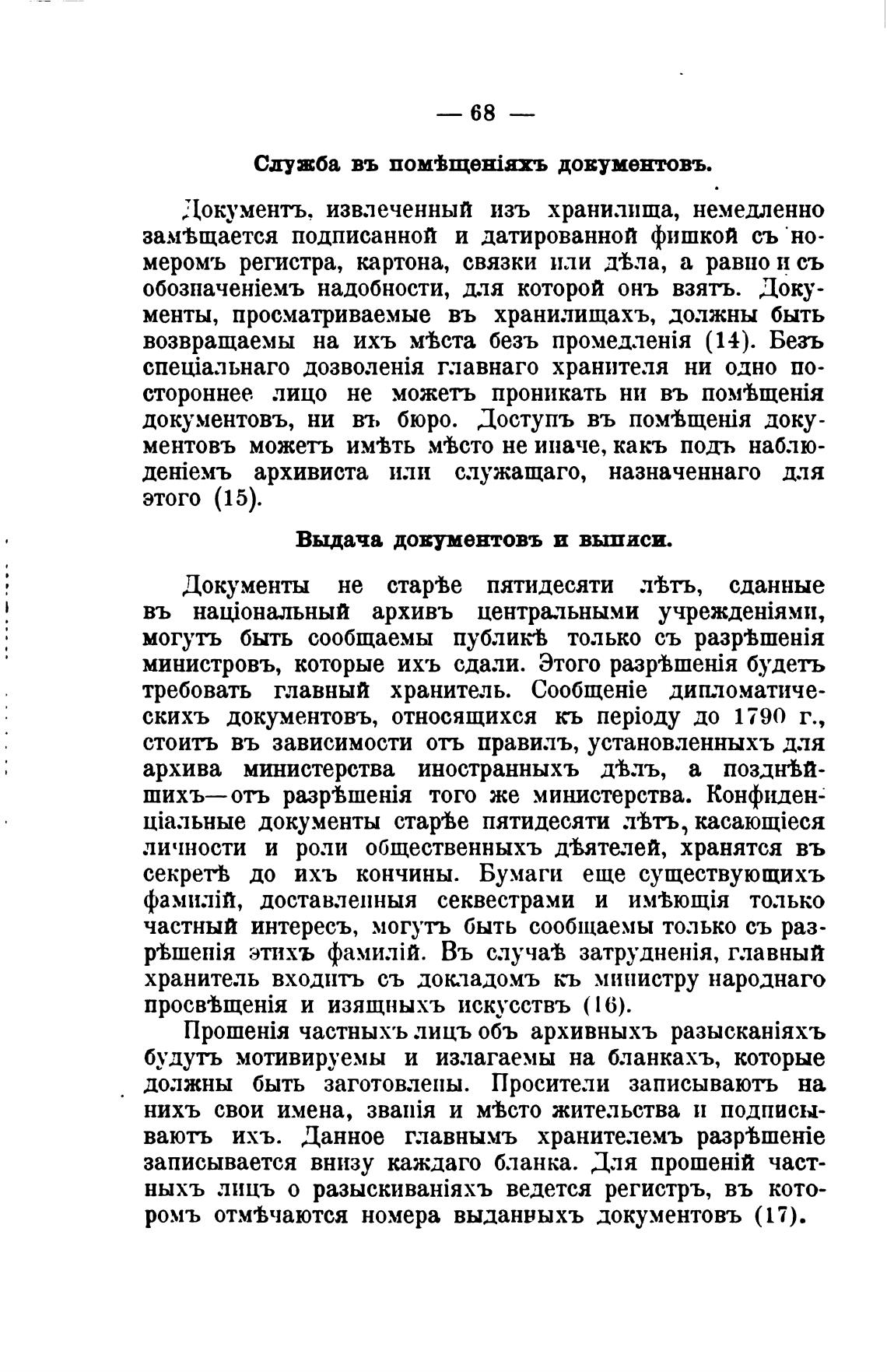 менты, просматриваемые въ хранилищахъ, должны быть