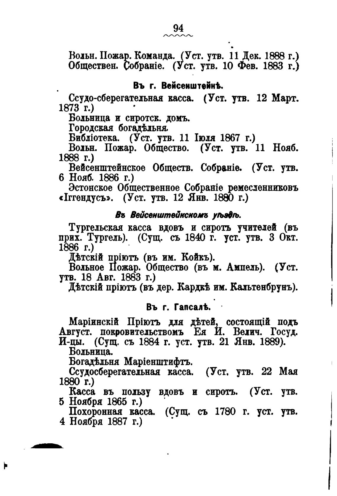 Вейсенштейнское Обществ. C06pBHie. (Уст. утв.