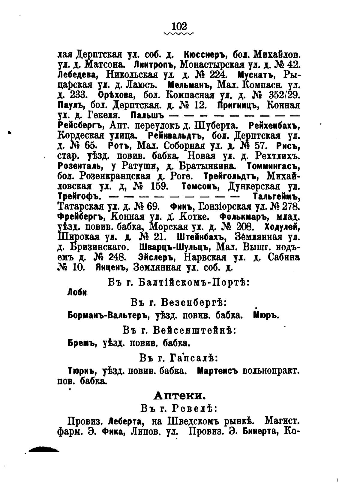 Тюркь, увзд. повив. бабка. Мартенсъ вольнопракт.