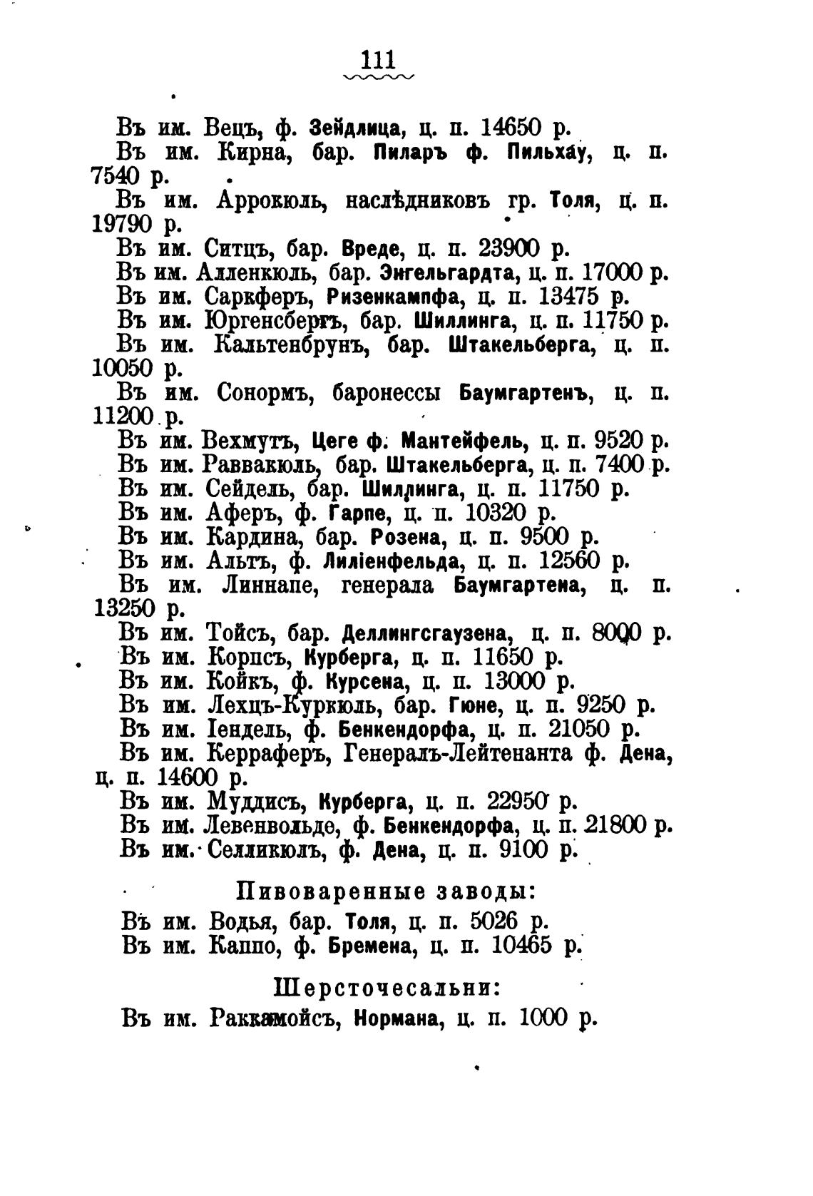Въ им. Юргенсбергъ, бар. Шиллинга, ц. п. 11750 р.