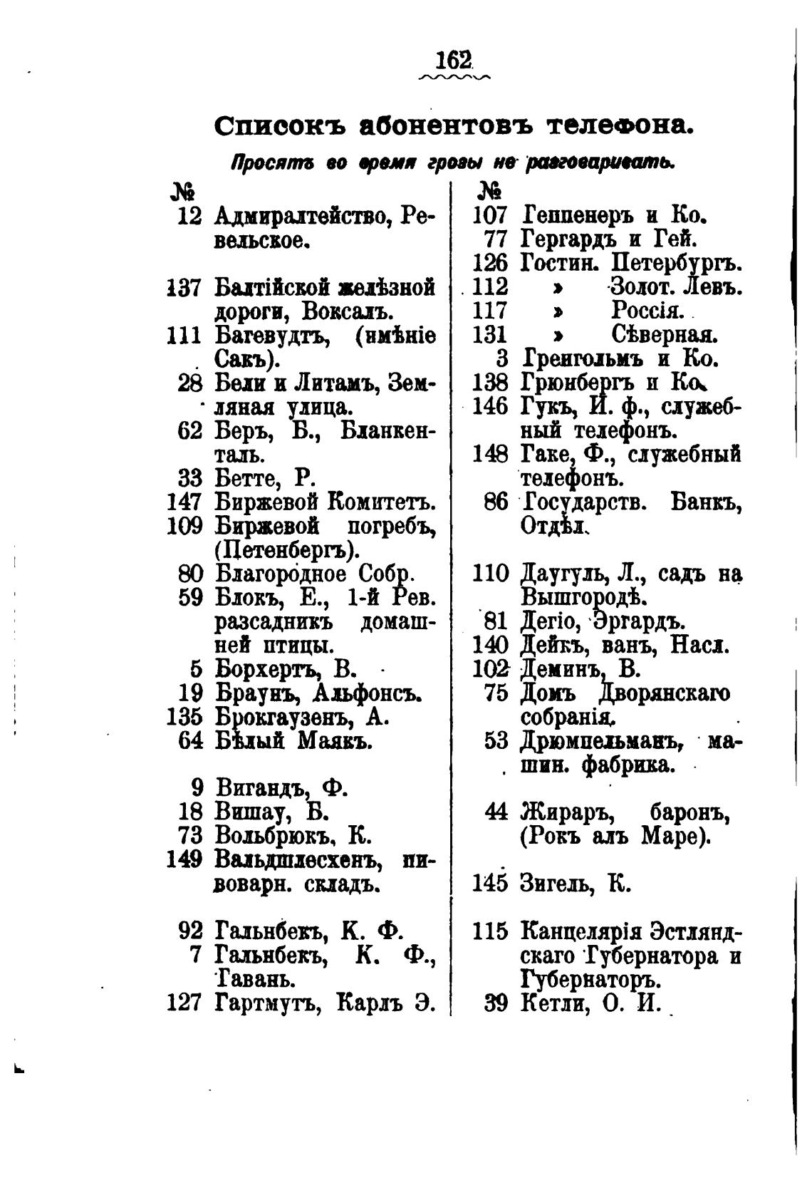списокъ абонентовъ телефона.