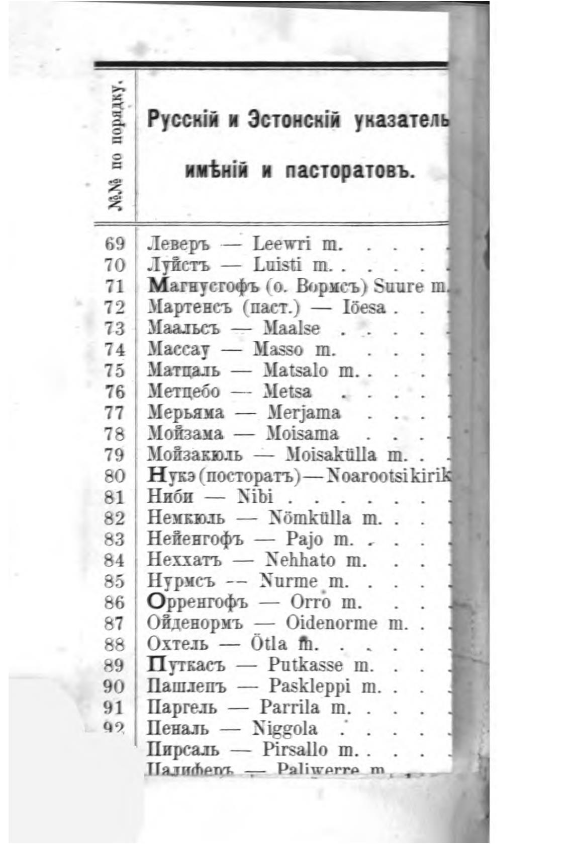 и пасторатовъ.