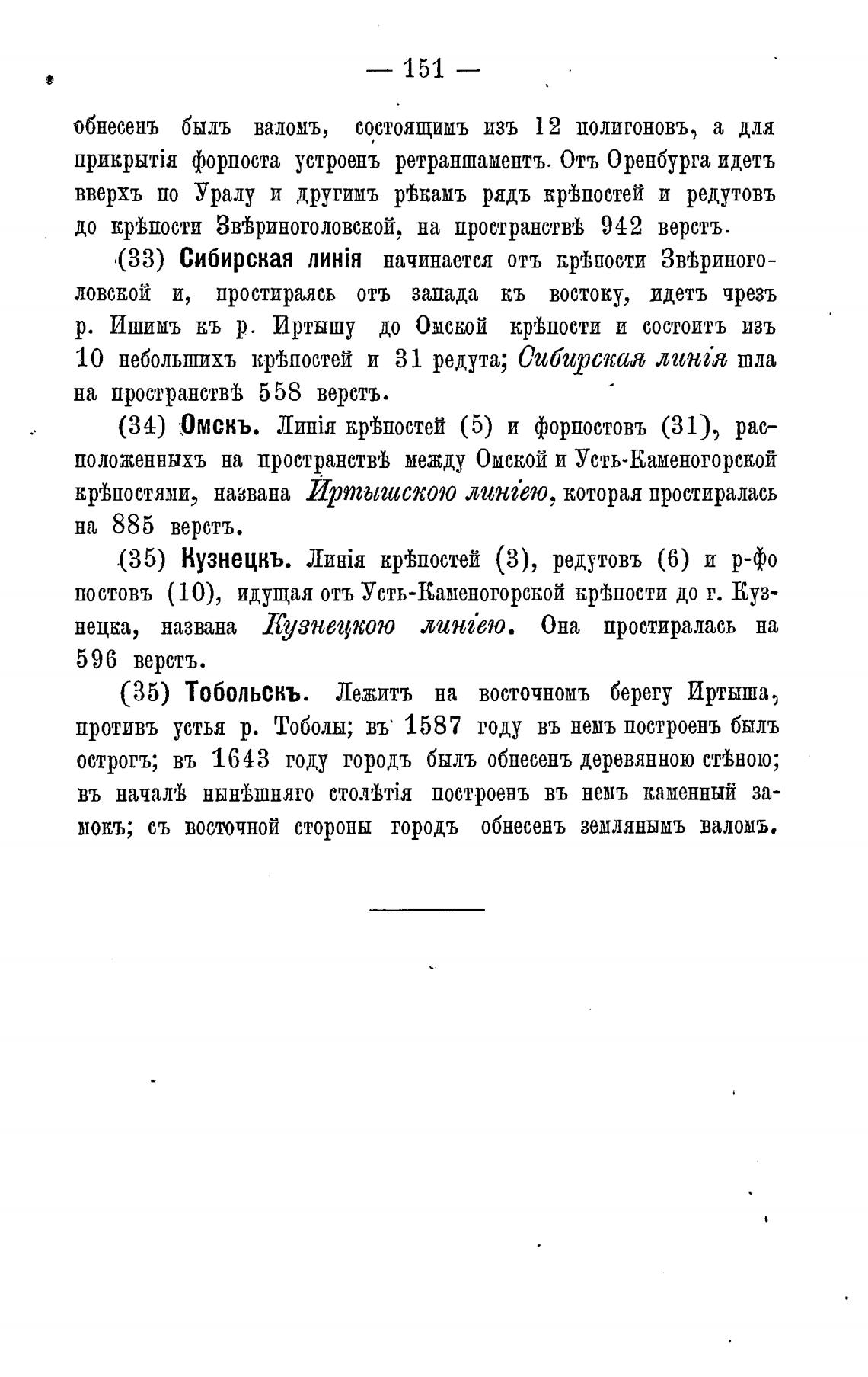 10 небольшихъ кргВпостей и 31 редута; Сибирская линг•я шла