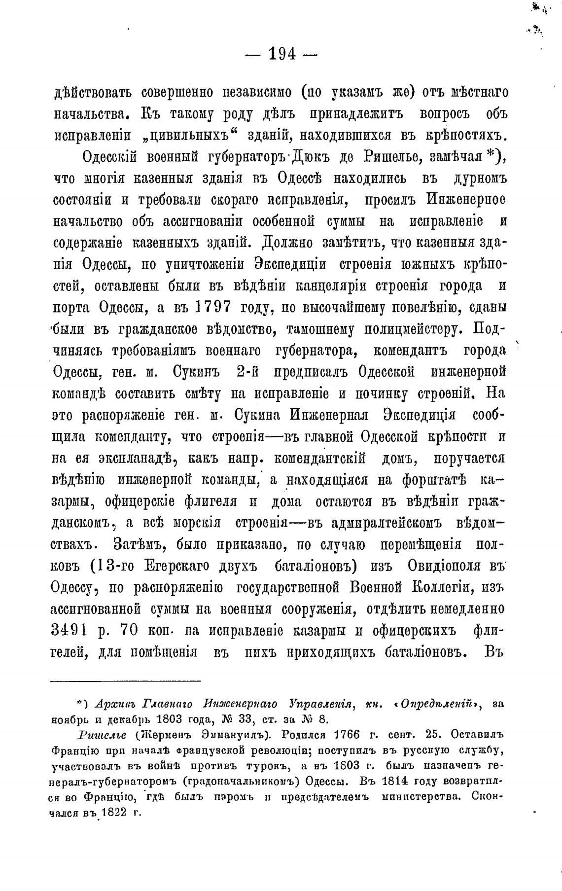 военный губернаторъ • Дюкъ до Ришелье, замгЬчая *),
