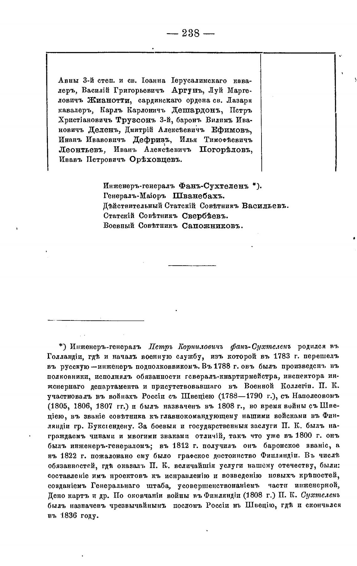 * ) Инженеръ-генералъ Петр Лоржыовичъ фанг- Сустејенб родидся въ