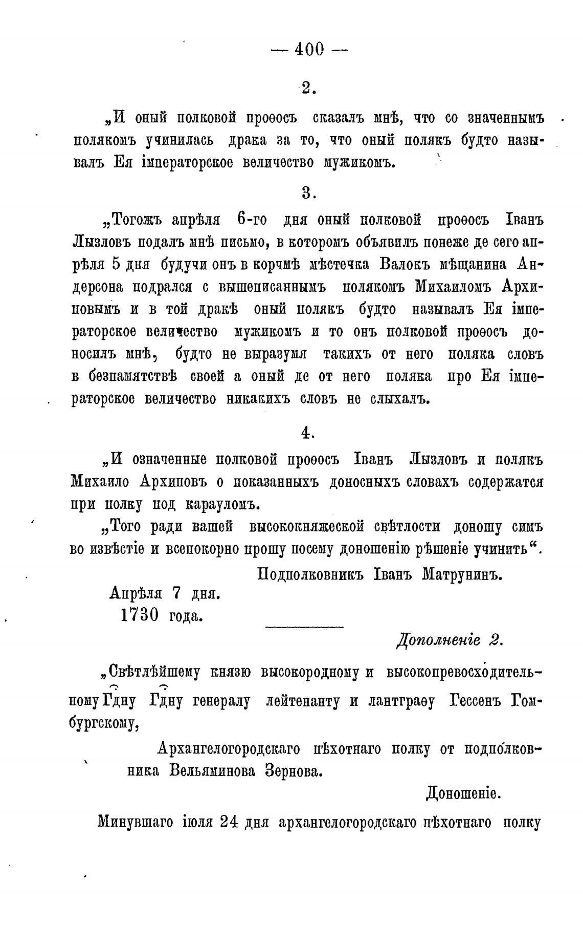 „Тогожъ апргвля 6-го дня оный полковой проеосъ 1ванъ